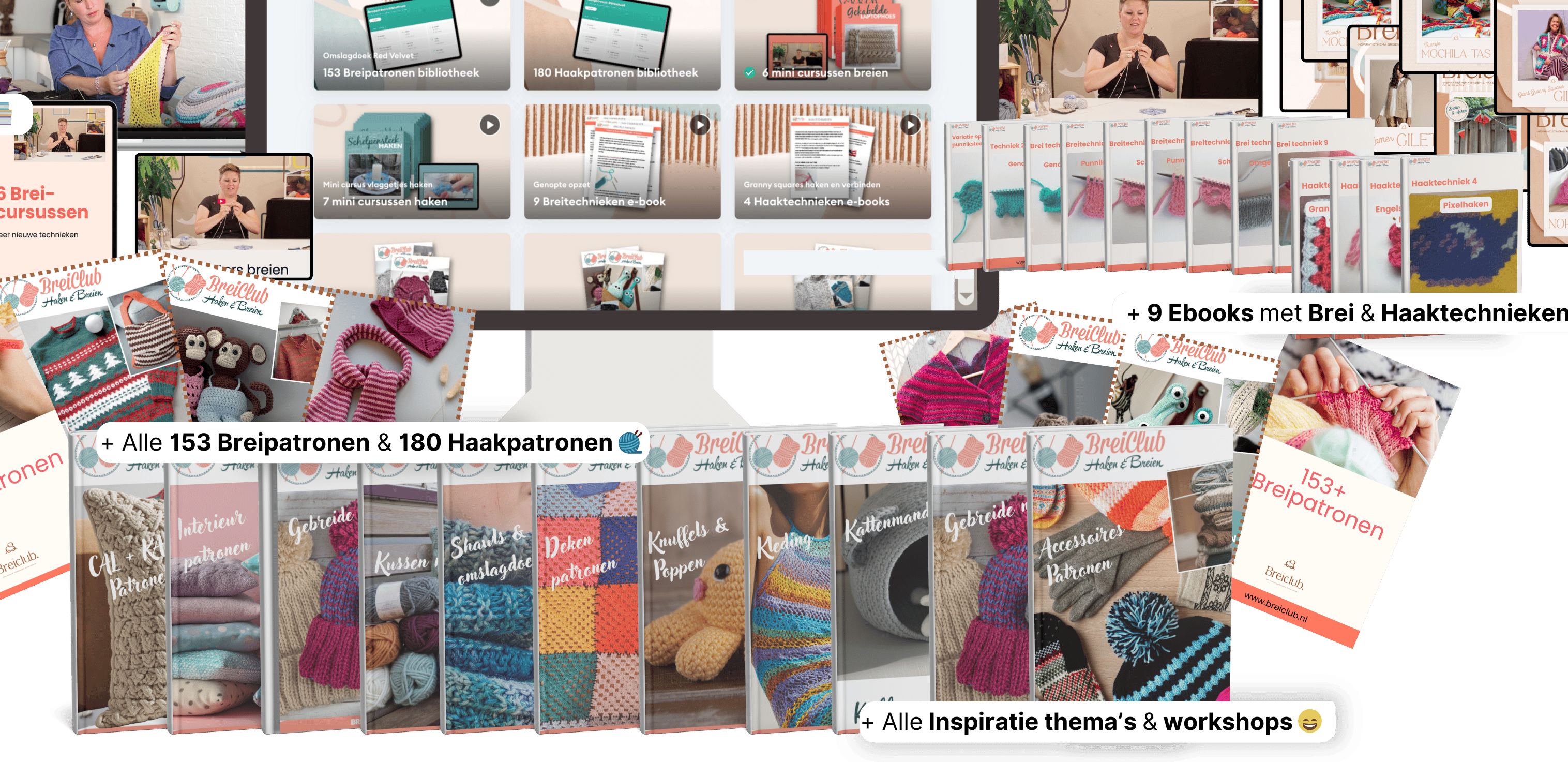 - 9x Inspiratiethema's voor haken- 9x Inspiratiethema's voor breien- 8x Gelukbrengers unieke patronen- 7x Bloemgeluk haken patronen- CAL-projecten inclusief instructievideo’s- de 'Gevoelens in Garens' deken- het Beddensprei-patroon- foute Kersttruien collectie- diverse KAL-projecten incl. instructievideo’s- replays van het Breiclub Café.